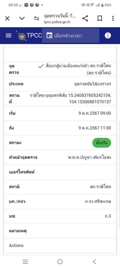 5.สถานที่ตั้งจุดตรวจ สี่แยกตู้ยามเมืองคง ต.เมืองคง อ.ราษีไศล จว.ศรีสะเกษ