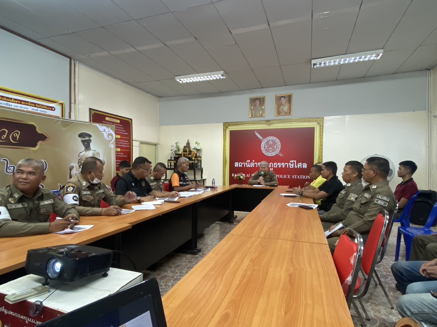 พร้อมข้าราชการตำรวจ สภ.ราษีไศล ประชุมชี้แจงแผนรักษาความปลอดภัยและอำนวยความสะดวกด้านการจราจร ตามโครงการ เดิน วิ่ง ปั่น ป้องกันอัมพาตครั้งที่ 10 เนื่องในโอกาสพระราชพิธีมหามงคลเฉลิมพระชนมพรรษา 6 รอบ 28 กรกฎาคม 2567 ณ ห้องประชุม สภ.ราษีไศล
