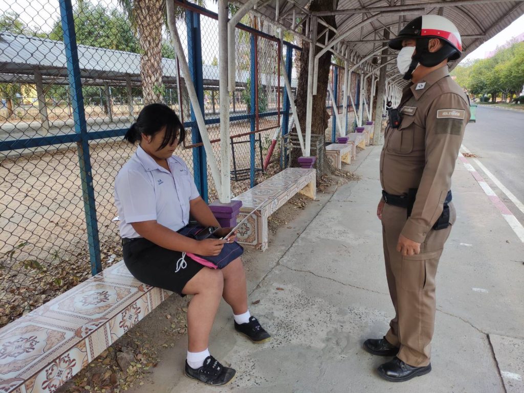 3.ตรวจเยี่ยมนักเรียนแล้ว สอบถามปัญหาความเดือดร้อน ประชาสัมพันธ์การป้องกันภัยจากอาชญากรรมทางเทคโนโลยี ขอความร่วมหากพบสิ่งผิดปกติให้รีบแจ้ง สถานีตำรวจภูธรราษีไศล ทันที