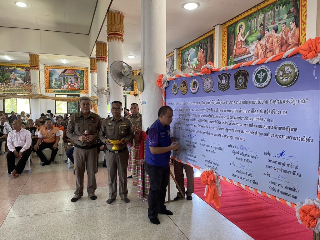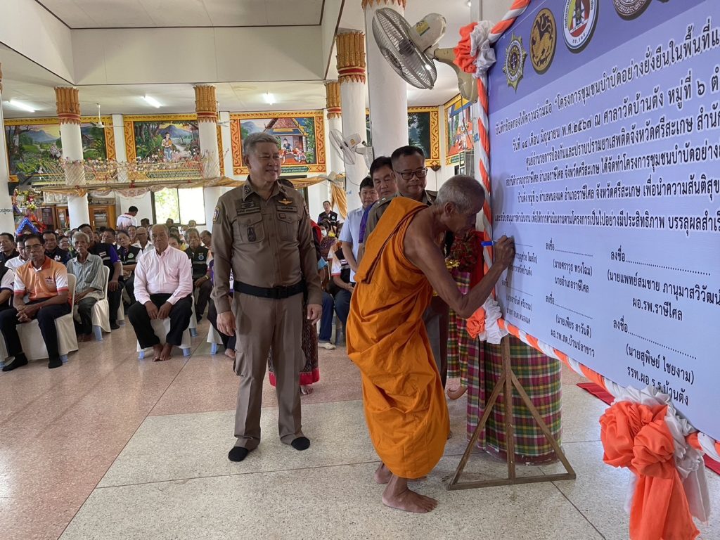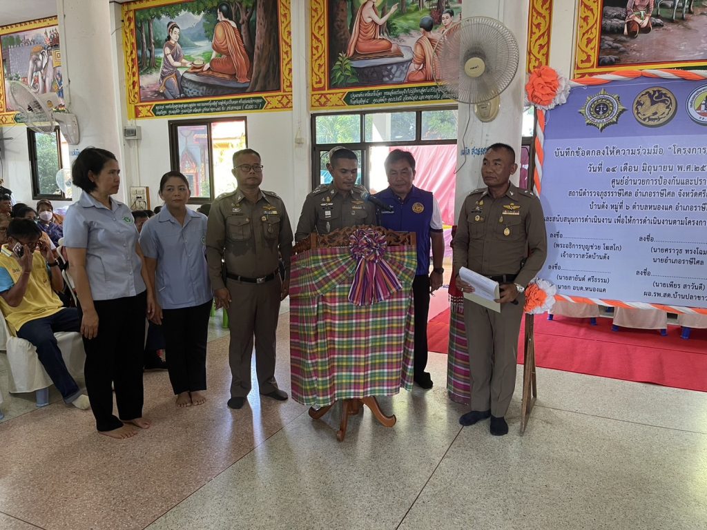 วันนี้ (11 มีนาคม 2567) เวลา 14.00น. พ.ต.อ.ณัฐกิตติ์ เจริญเกษสุวรรณ์ผกก.สภ.ราษีไศล ,พ.ต.ท.บัญชา เพียรไธสง รอง ผกก.ป.ฯ พ.ต.ท.วีรวิทญ์ อารยะสิทธินนท์ รอง ผกก.สส.ฯ, พ.ต.ท.ศรายุทธ สุขดี สวป.ฯ พ.ต.ต.นวพล พื้นผา สวป.(ชส.)ฯ และชุดปฏิบัติการตำบลยั่งยืน ฯ ของ สภ.ราษีไศล, ข้าราชการตำรวจ สภ.ราษีไศล ร่วมกับภาคีเครือข่าย, หน.ส่วนราชการ ในพื้นที่ ต.บัวหุ่ง อ.ราษีไศล , รพ.สต.บัวหุ่ง, นายกองค์การบริหารส่วนตำบลบัวหุ่ง , กำนันตำบลหัวหุ่ง, ผู้ใหญ่บ้าน ในเขตตำบลบัวหุ่ง พร้อมผู้ช่วยผู้ใหญ่บ้าน จนท.ชรบ ตลอดจนประชาชน คณะกรรมการหมู่บ้าน อสม.ได้ร่วมพิธีเปิดโครงการตำบลยั่งยืนเพื่อเเก้ไขปัญหายาเสพติดเเบบครบวงจร ตามยุทธศาสตร์ชาติ ประจำปีงบประมาณ พ.ศ.2568 ของ สภ.ราษีไศล และ หน.ส่วนราชการ ภาคีเครือข่าย ได้ร่วมลงนามบันทึกข้อตกลงให้ความร่วมมือ (MOU) ตามโครงการ ดังกล่าว ณ ศาลาวัดบ้านบัวหุ่ง หมู่5 อ.ราษีไศล จ.ศรีสะเกษ