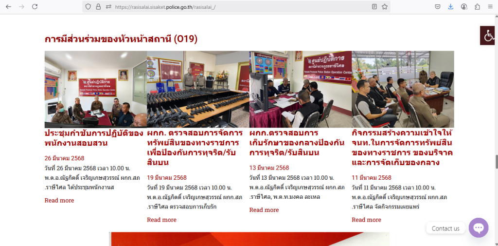 วันที่ 11 มีนาคม 2568 เวลา 10.00 น. พ.ต.อ.ณัฐกิตติ์ เจริญเกษสุวรรณ์ ผกก.สภ.ราษีไศล จัดกิจกรรมเผยแพร่หรือสร้างความเข้าใจให้เจ้าหน้าที่ในการจัดการทรัพย์สินของทางราชการ ขงอบริจาค และการจัดเก็บของกลาง เพื่อป้องกันการทุจริตในหน่วยงาน
