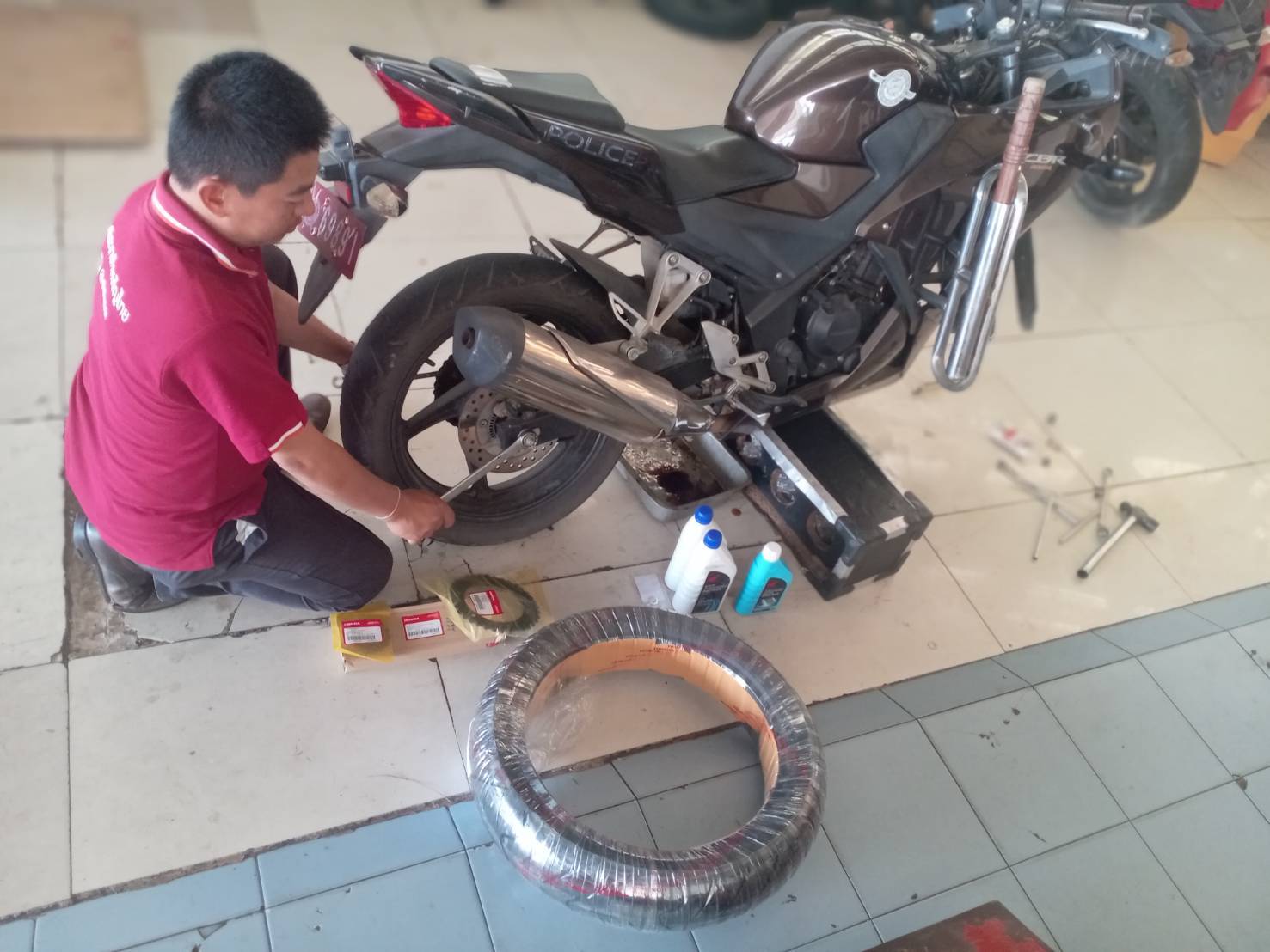 งานอำนวยการ ได้นำรถจักรยานยนต์โล่ สายตรวจเข้าซ่อมบำรุง ซึ่งได้ทำการเปลี่ยน 1.ถ่ายน้ำมันเครื่อง 2.น้ำ